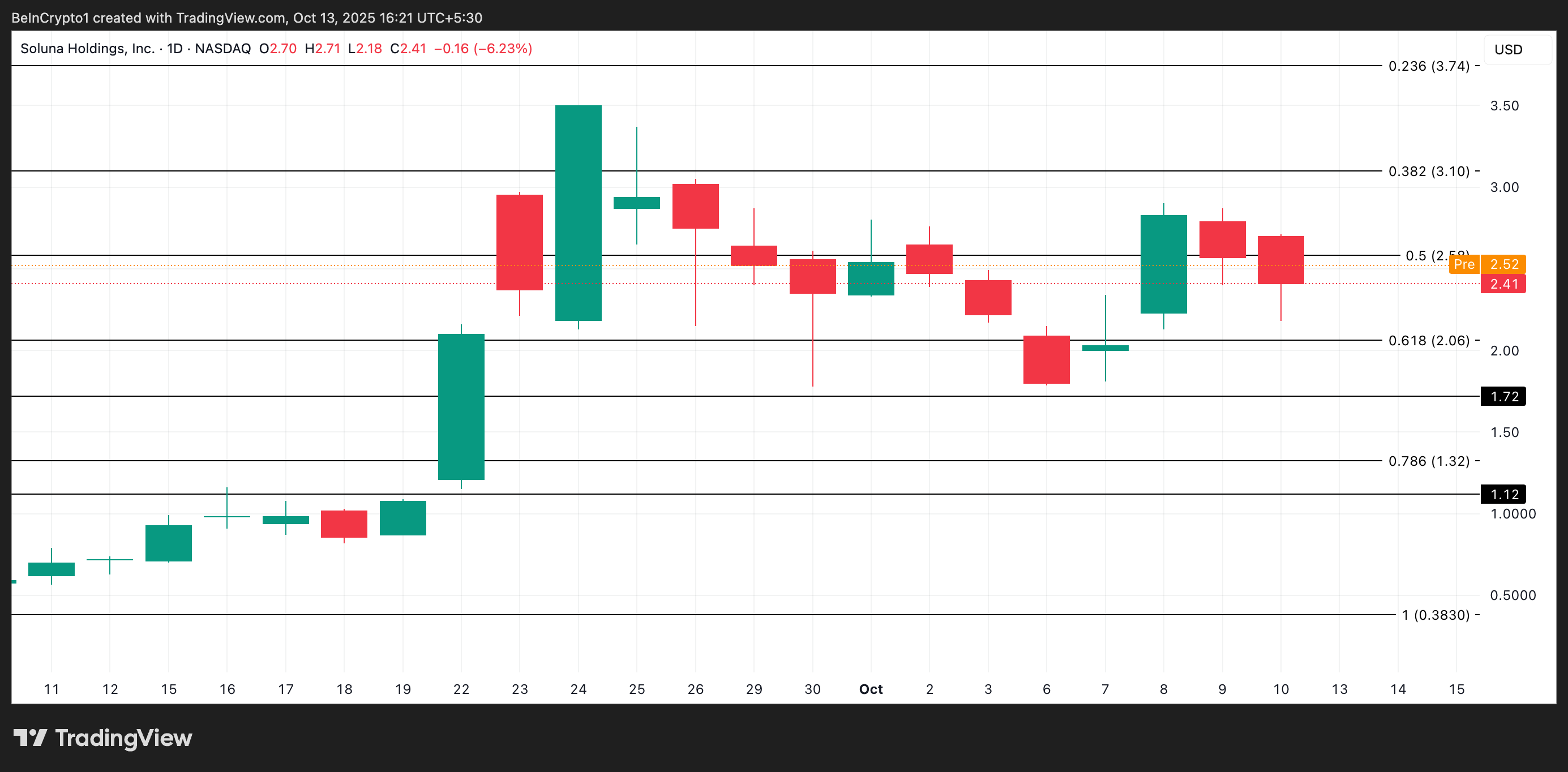 SLNH stengte forrige fredag på $ 2,41, med en nedgang på 6 % den dagen. Til tross for denne nedgangen fortjener kryptoaksjen nær oppmerksomhet etter en stor partnerskapskunngjøring som kan påvirke investorstemning og prisbevegelse denne uken.