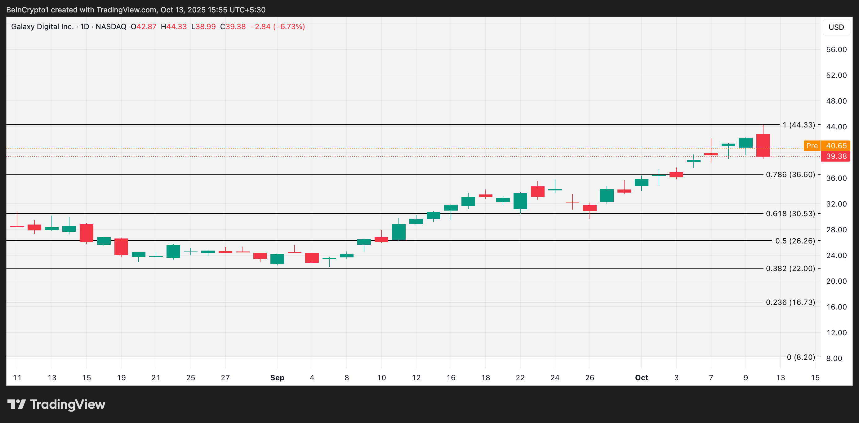 GLXY stengte forrige fredag på $ 39,38, noe som markerte en nedgang på 7 % den dagen. Det kraftige fallet reflekterte bredere svakhet i kryptomarkedet, ettersom omfattende likvidasjoner tynget krypto-relaterte aksjer.