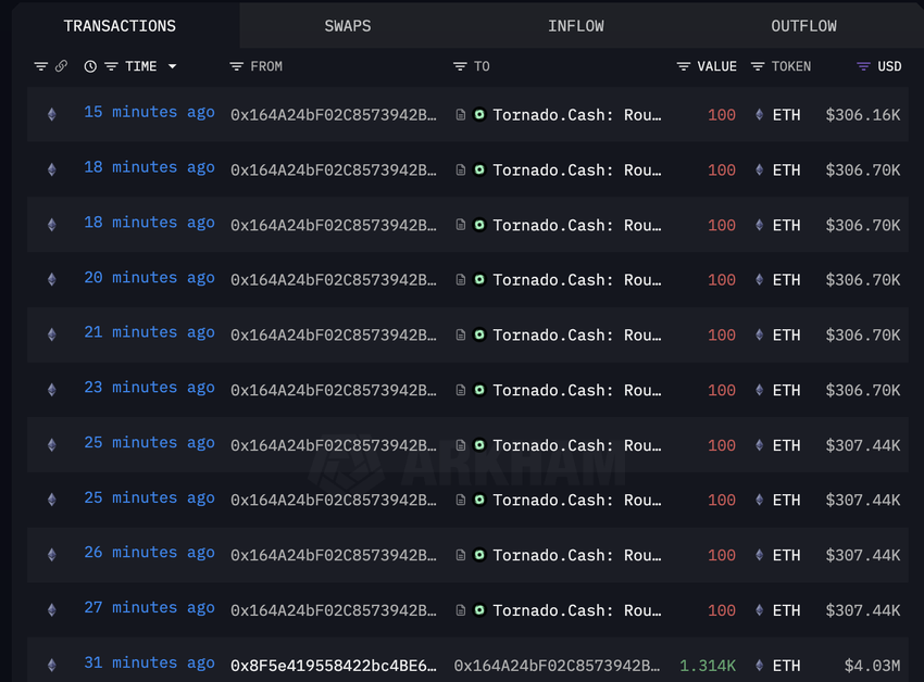 Samtidig overførte hackerne som var involvert i en egen hendelse hos Kronos Research 200 ETH direkte til Tornado Cash og omtrent 1,314 ETH (til en verdi av rundt 4 millioner dollar) til en ny kryptolommebok – 0x164. Herfra har midlene begynt å flytte til Tornado Cash, med den nåværende saldoen på 314 ETH, omtrent $ 962,000.