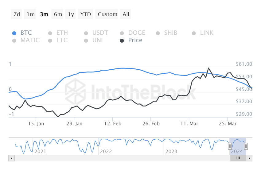 Avalanche skiller seg dessuten ut fra det bredere kryptomarkedet. Korrelasjonen med Bitcoin er på lave 0,17, noe som tyder på at selv om Avalanche fortsatt kan følge de bredere markedstrendene, vil kursbevegelsene ikke være like tett knyttet til Bitcoins svingninger.