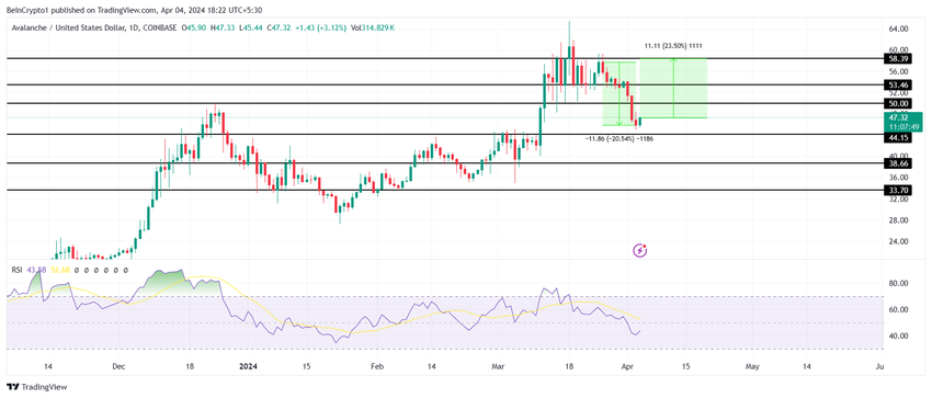 Skulle Avalanche slite med å overgå disse motstandsnivåene, spesielt $ 53-merket, kan det miste sitt bullish momentum og se en reversering i den oppadgående trenden. Dette scenariet vil negere den optimistiske prognosen og kan føre til at prisen faller tilbake under $ 50.