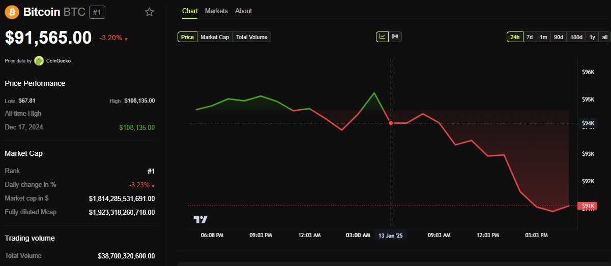 I følge BeInCrypto-data holder Bitcoin seg fortsatt over det psykologiske nivået på $ 90 000, og handles til $ 91 565 i skrivende stund. Likevel favoriserer oddsen nedgangen midt i avtagende etterspørsel, med noen analytikere som forventer et nytt fall for BTC til å bunne ut rundt $ 70 000-området.