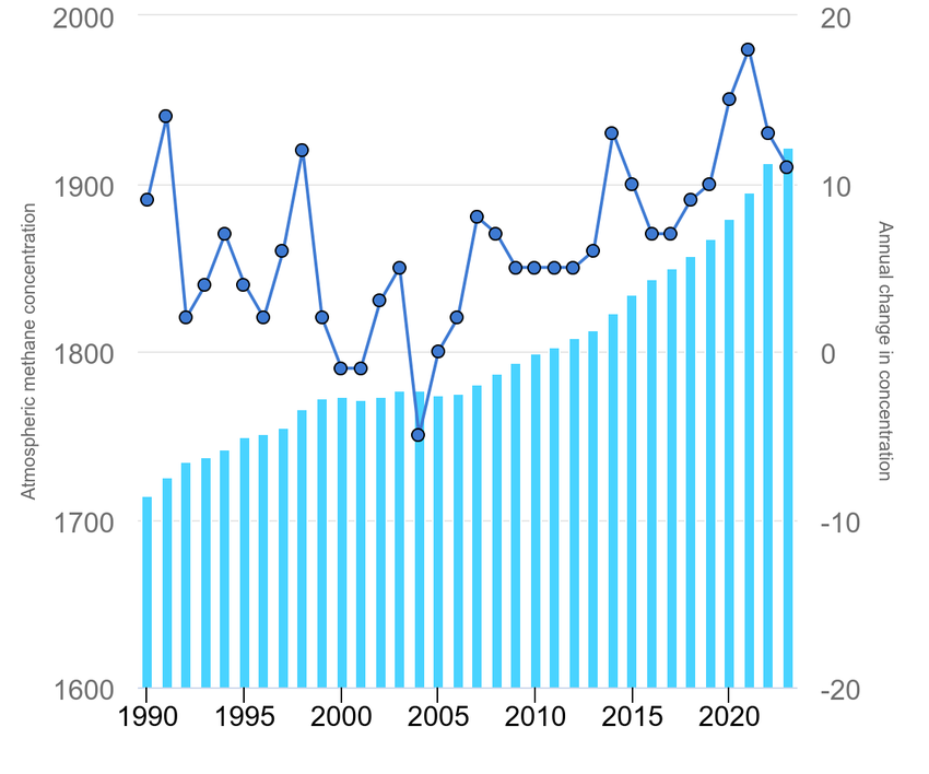 Ifølge Det internasjonale energibyrået (IEA) vil det bli sluppet ut mer enn 120 millioner tonn metan i atmosfæren i 2023, et tall byrået anser som uakseptabelt høyt. USA, som er det landet som slipper ut mest metan fra olje- og gassvirksomhet, er en stor bidragsyter.