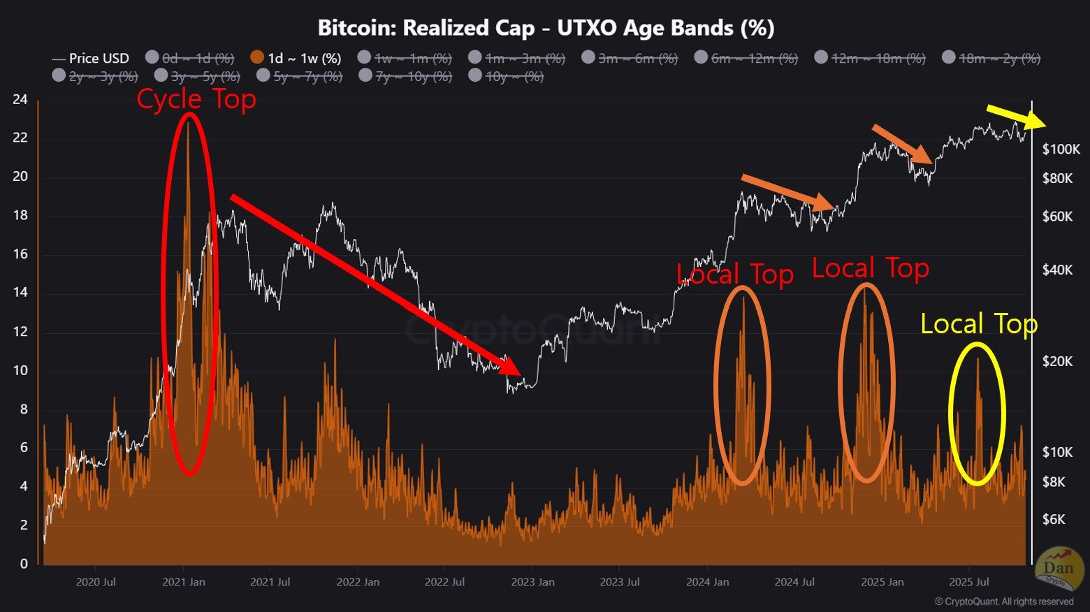 I et detaljert innlegg pekte Crypto Dan på mengden kapital som strømmer inn i markedet som en nøkkelindikator for hvor i syklusen vi er. Analytikeren sammenlignet de nåværende forholdene med tidligere topper og korrigeringer.