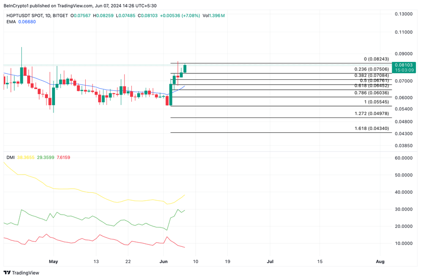 Oppgangen i HGPT-etterspørselen presset prisen over 20-dagers eksponentielt glidende gjennomsnitt (EMA) 3. juni. Et aktivums 20-dagers EMA sporer gjennomsnittsprisen de siste 20 dagene.