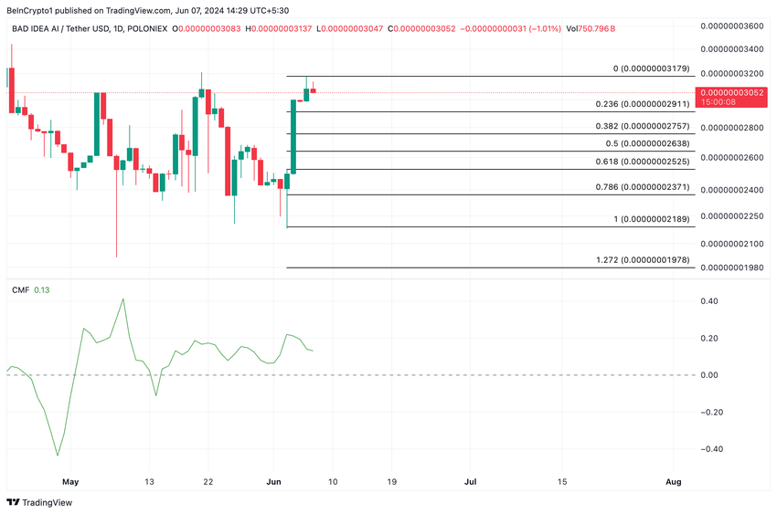 I skrivende stund handles dette altcoin til $ 0.00000003035. Dens Chaikin Money Flow (CMF) ble oppdaget i en oppadgående trend og over nulllinjen på 0.13.