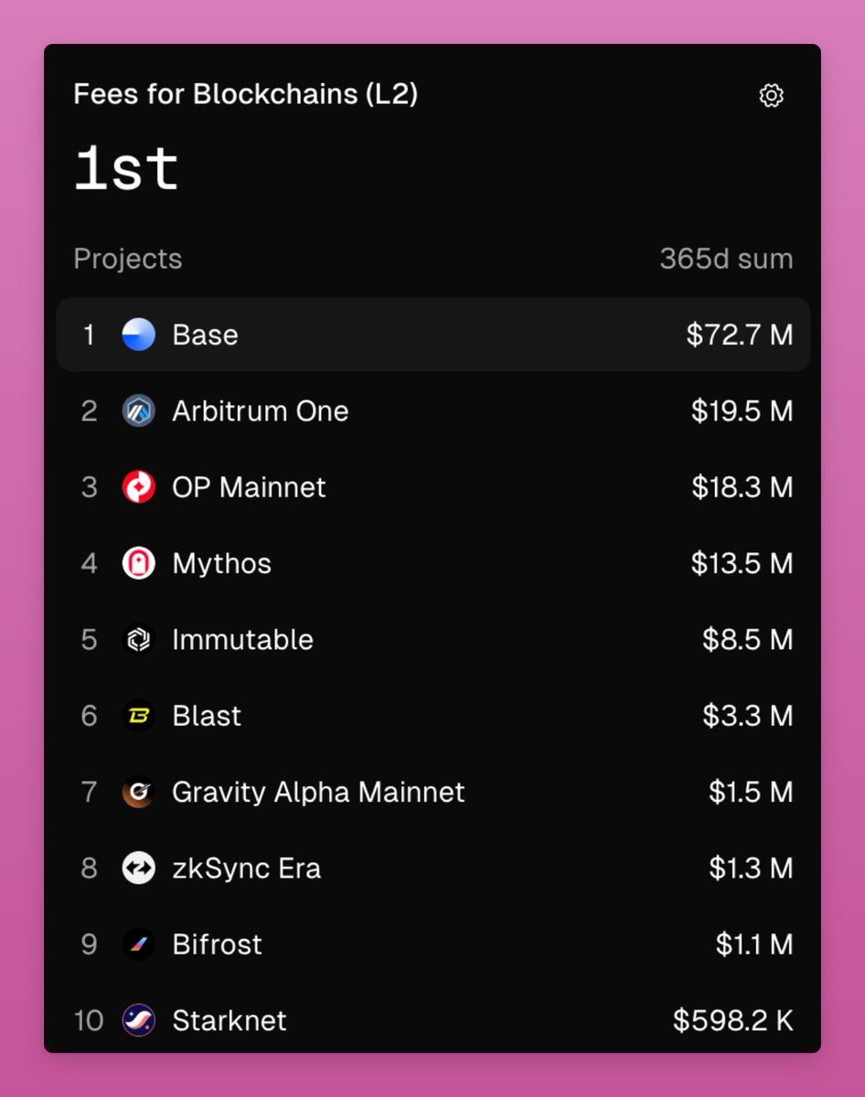 Det første viktige aspektet er gebyrene generert av L2-prosjekter. Ifølge Ignas viser årlige gebyrer fra L2-blokkjeder store forskjeller: Arbitrum One leder med $ 19,5 millioner, Optimism med $ 18,3 millioner, zkSync tjener bare $ 1,3 millioner, og Starknet omtrent $ 600 000.