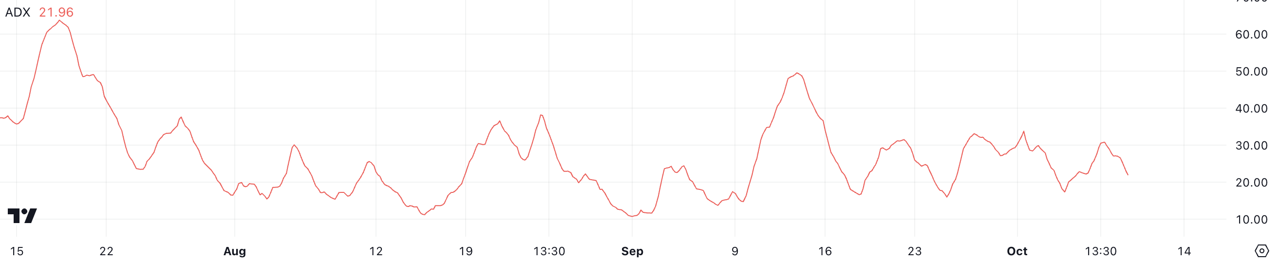 OMs ADX er for øyeblikket på 21,96, ned fra 30 for bare to dager siden. ADX (Gjennomsnittlig retningsindeks) er en teknisk indikator som hjelper til med å måle styrken på en markedsutvikling, uavhengig av retningen.
