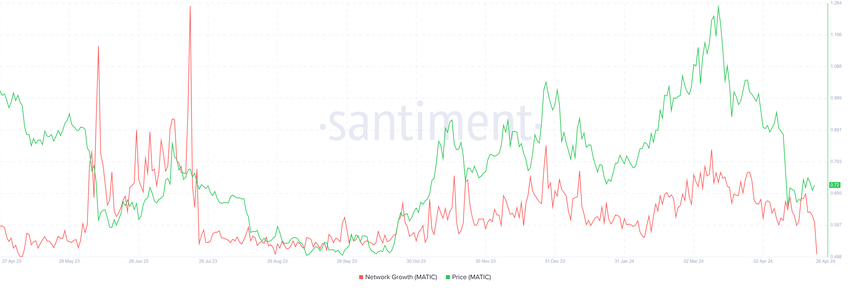 MATIC-innehavere viser blandede signaler, med aktive investorer som opptrer bullish til nøytrale, mens potensielle investorer gjør et bearish trekk. Dette er tydelig fra Mean Coin Age og Network Growth.
