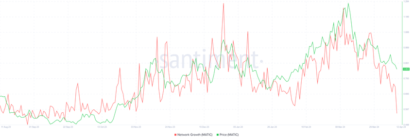 For øyeblikket er Polygons nett verksvekst på det laveste nivået på syv måneder, noe som betyr at MATICs adopsjon har fått et kraftig tilbakeslag.