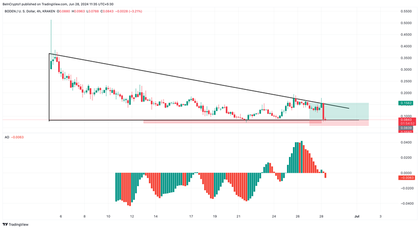 27. juni var BODENs pris 0,13 dollar, en nedgang på 12 % fra 26. Imidlertid fortsatte meme-mynten å synke etter den første offentlige debatten, med prisen som stupte til $0,080.