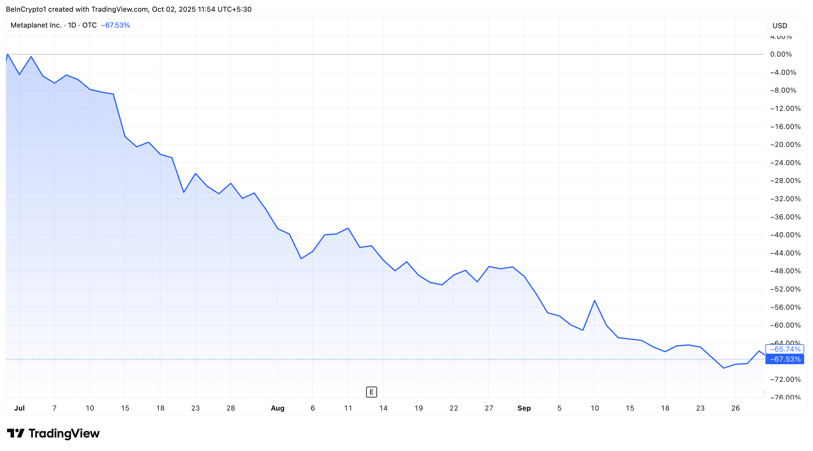 I kontrast viste Coinglass data at Bitcoin selv avsluttet Q3 med en gevinst på 6,31 %. Det kraftige salget understreker utfordringen Metaplanet står overfor med å tilpasse sine operasjonelle prestasjoner med investorens tillit, selv om det befester sin rolle som en av verdens største bedrifts Bitcoin-innehavere.