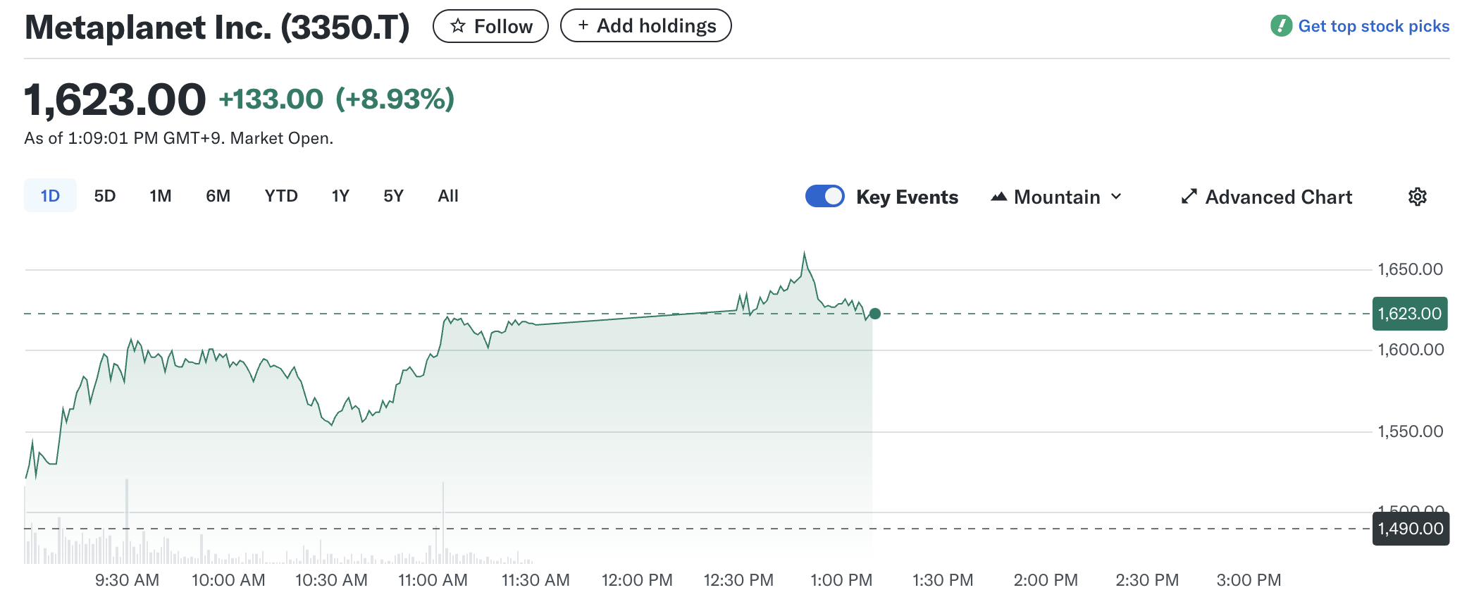 I mellomtiden har Metaplanets aksje, 3350.T, også dratt nytte av de siste bevegelsene. Ifølge Yahoo Finance Data, var aksjekursene opp 8,9 % i skrivende stund. Hittil i år har verdien av 3350.T steget over 350 %.