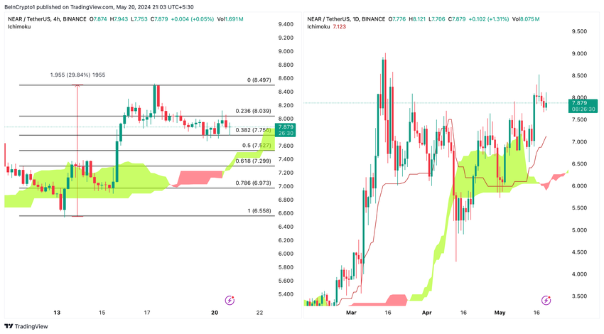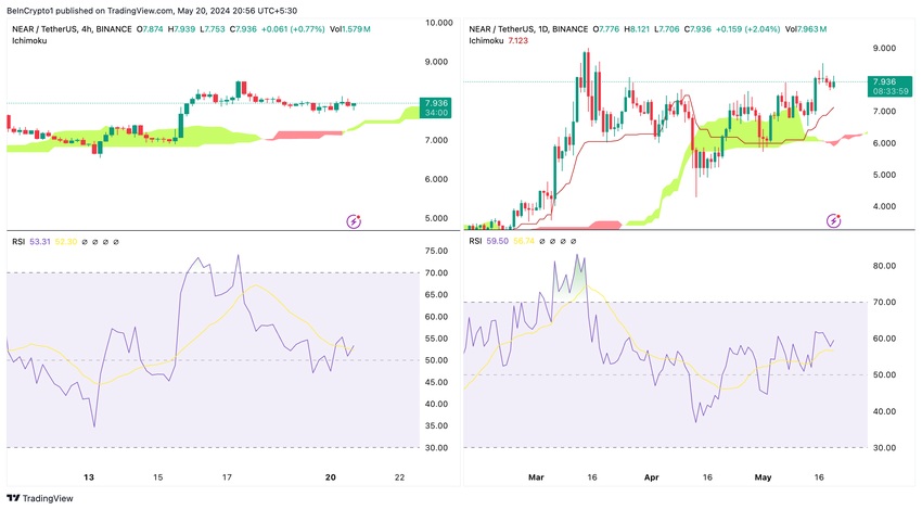 NEAR Price Action opprettholder over 4-timers Ichimoku Cloud