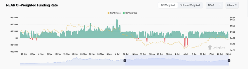 Interessant nok, til tross for dette, har deltakere i NEARs futuresmarked fortsatt å etterspørre lange posisjoner. Dette bevises av myntens finansieringsrate på tvers av kryptovalutabørser, som er 0,0047 % på nåværende tidspunkt