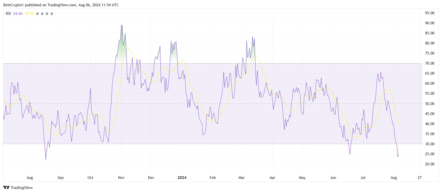 Sammen med effekten av det bredere markedets salgspress, har NEARs prisnedgang også vært på grunn av dets egne investorer. Relativ styrkeindeks (RSI) er dypt i overkjøpt sone, noe som indikerer at salgspress dominerer altcoinen.