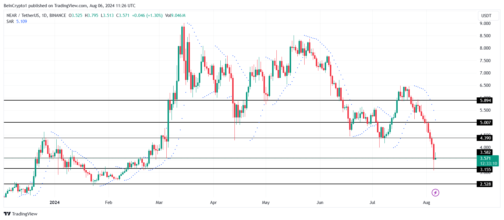 Dette ville muliggjøre ytterligere gjenoppretting for altcoinen, ettersom dette nivået har blitt testet som en støttegulv flere ganger. Å presse forbi $ 5,00-motstanden ville hjelpe NEAR-holdere å gjenvinne 50 % av tapene som nylig er notert.