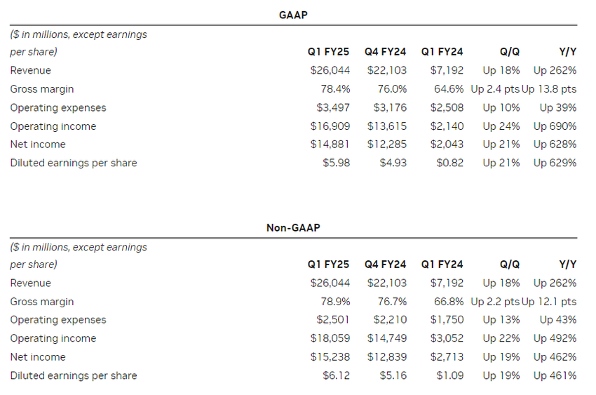 Nvidia økte også sitt kvartalsvise kontantutbytte fra 0,04 dollar til 0,10 dollar per aksje før splitt. Etter splittelsen vil utbyttet være $ 0.01 per aksje. Ser vi fremover, projiserer Nvidia 28 milliarder dollar i inntekter for dette kvartalet.