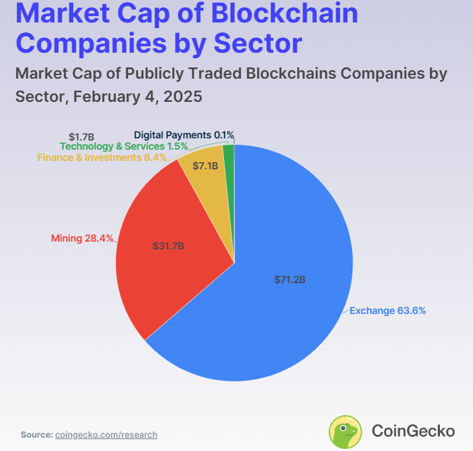 En nylig rapport fra CoinGecko avslører at børsnoterte blokkjede-selskaper utgjør 5,8 % av den totale kryptovalutamarkedsverdien.