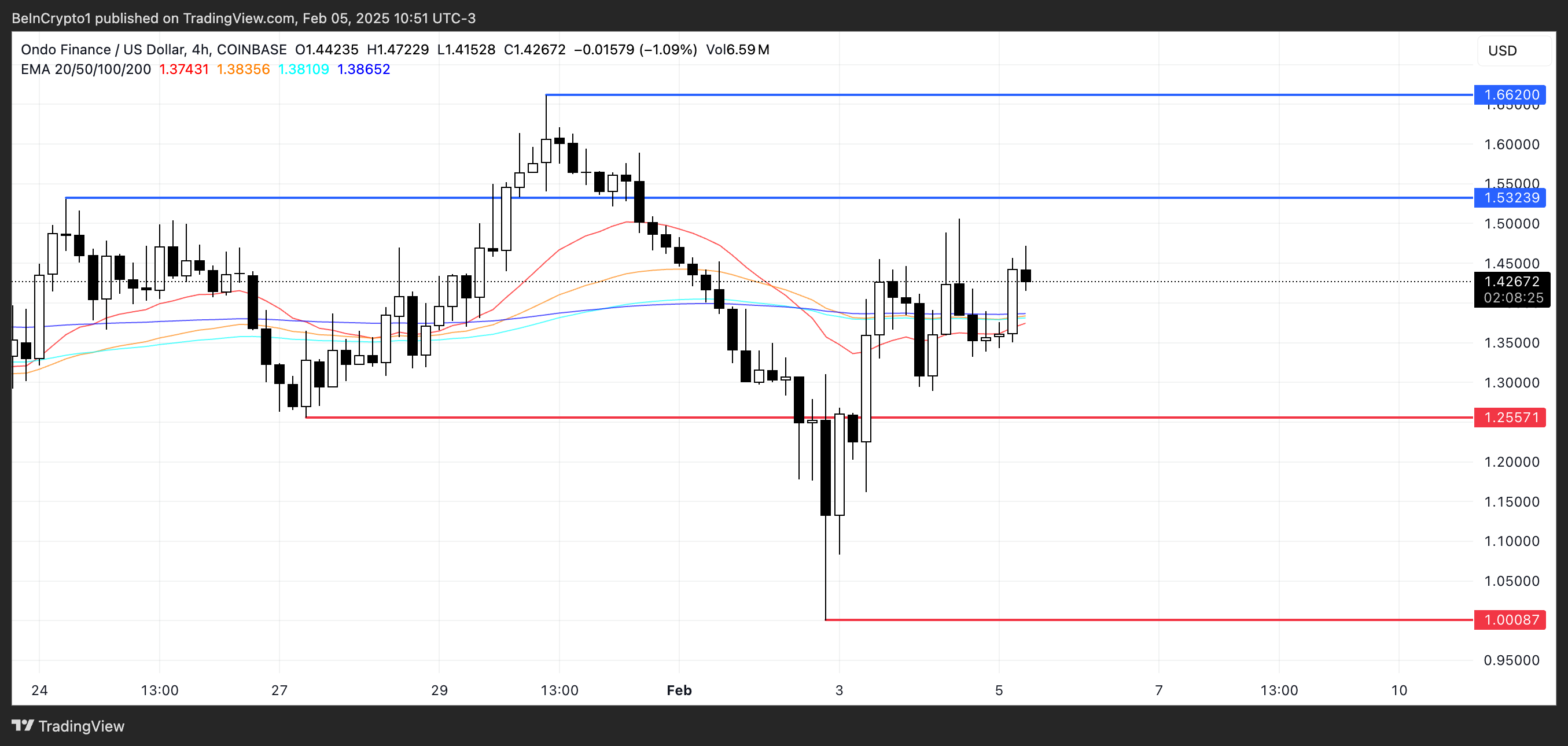 På den annen side, hvis ONDO ikke klarer å etablere en opptrend, kan det møte nedadgående press. Et fall til $ 1,25 støtten kan være det første tegnet på svakhet, og hvis det nivået brytes, kan ONDO falle ytterligere mot $ 1,00.
