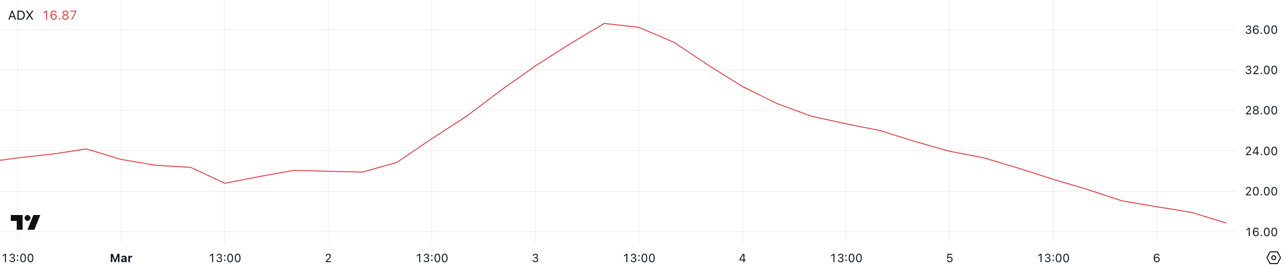 Imidlertid indikerer ADX at nedtrenden svekkes, noe som kan åpne for en reversering.