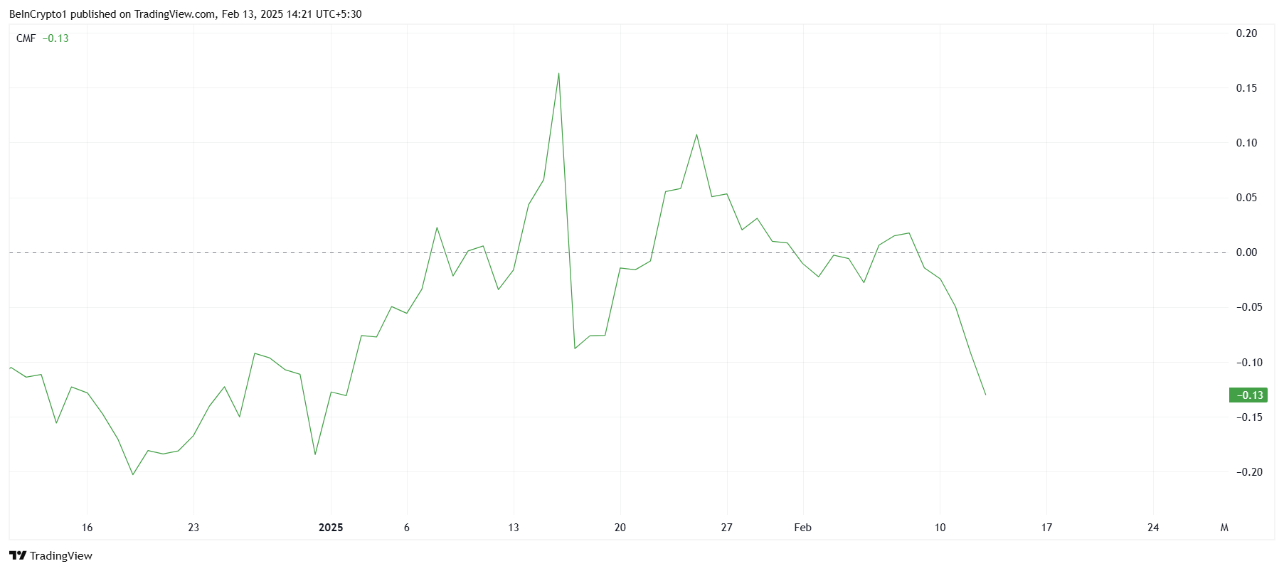 Onyxcoins bredere momentum viser tegn på svakhet, som indikert av Chaikin Money Flow (CMF). CMF har vist en kraftig nedgang de siste dagene, noe som antyder at penger strømmer ut av aktivaet. Denne tilbaketrekningen kan reflektere økende investorfrustrasjon over mangelen på prisoppgang.