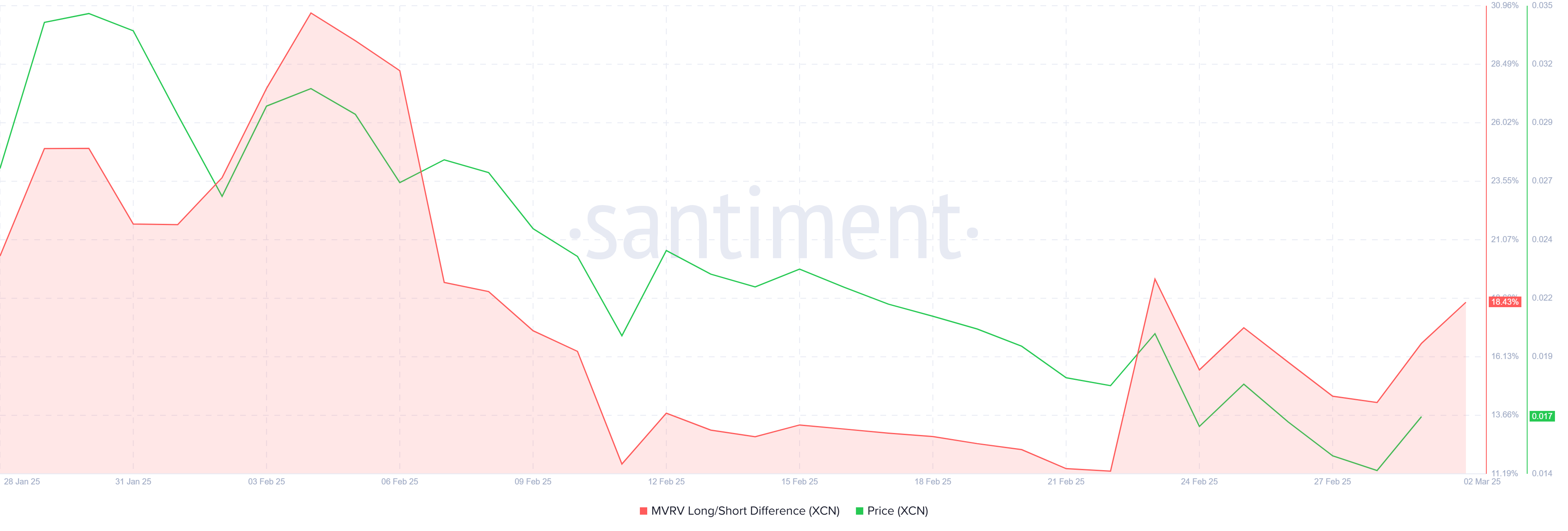 Hvis prisen fortsetter å konsolidere rundt disse nivåene, forblir utsiktene usikre. Uten betydelig markedstøtte eller en klar reversering i sentiment, kan XCN fortsette å slite, falle under $ 0,0150 og potensielt teste $ 0,0127.