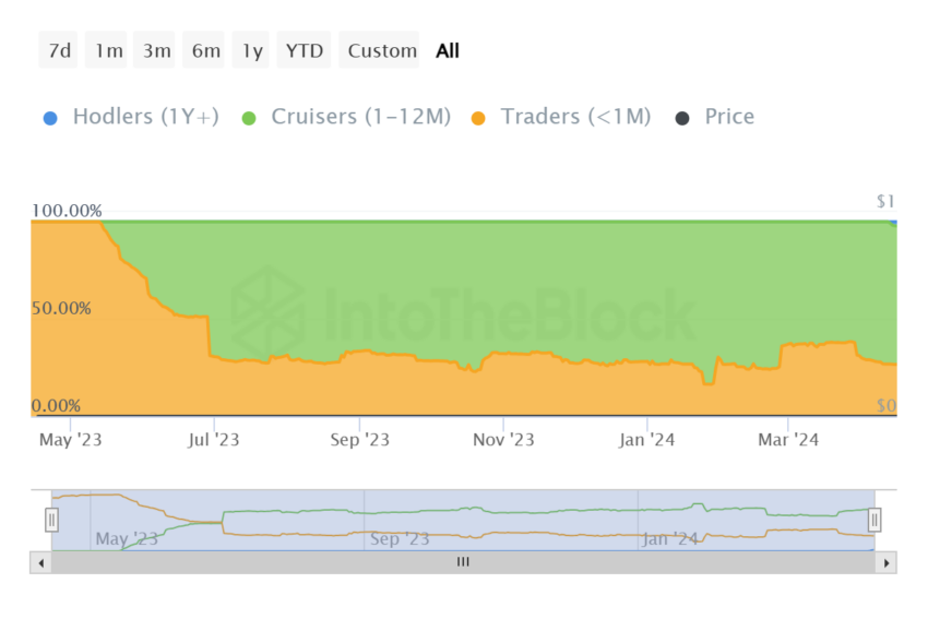 Deres bullish stemning underbygges ytterligere av detaljistinvestorene som for øyeblikket viser overbevisning. Generelt anses det meste av tilbudet i hendene på kortsiktige eiere som et bearish tegn. Dette skyldes at disse investorene holder på aksjen i mindre enn en måned, noe som fører til salg.