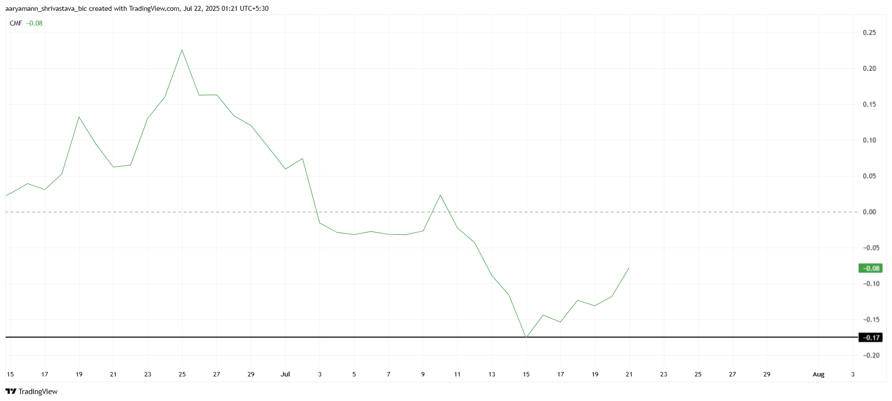 De makroøkonomiske indikatorene stemmer også overens med en bullish prognose. Chaikin Money Flow (CMF) trender oppover, noe som indikerer kapital innstrømning til Pi Coin. Denne innstrømningen antyder at investorer får økt tillit og kan posisjonere seg foran en mulig altcoin-rally.