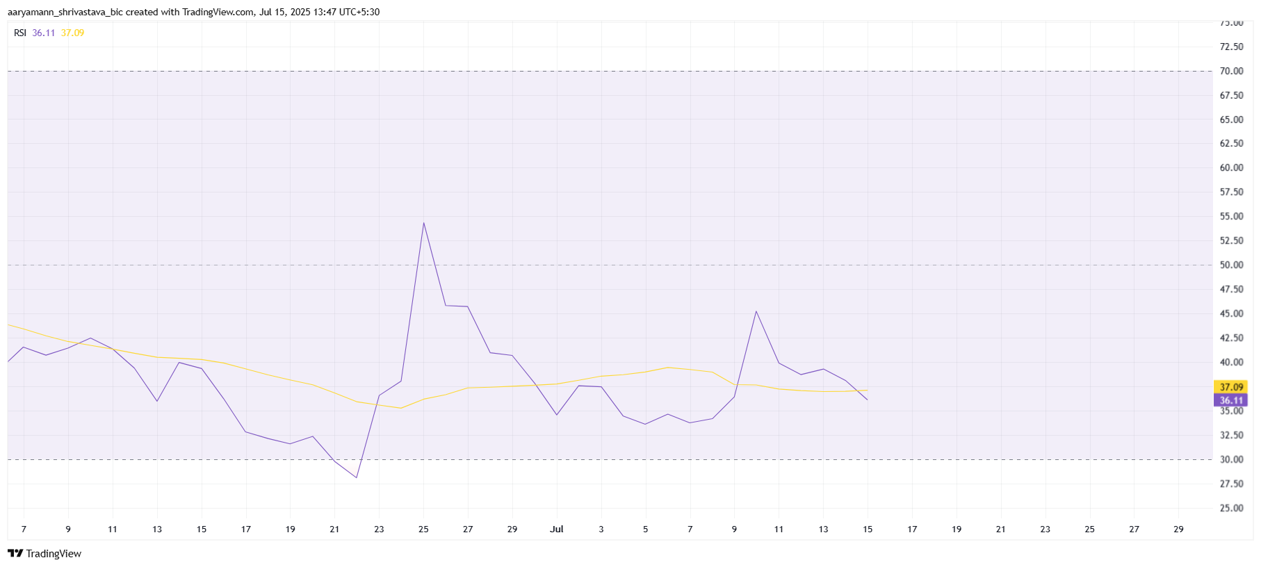 Relative Strength Index (RSI) er en nøkkelindikator som gir et dystert bilde for Pi Coin. For øyeblikket befinner den seg i den bearish sonen under 50,0-nøytralmerket, noe som tyder på at nedadgående momentum er i full effekt.