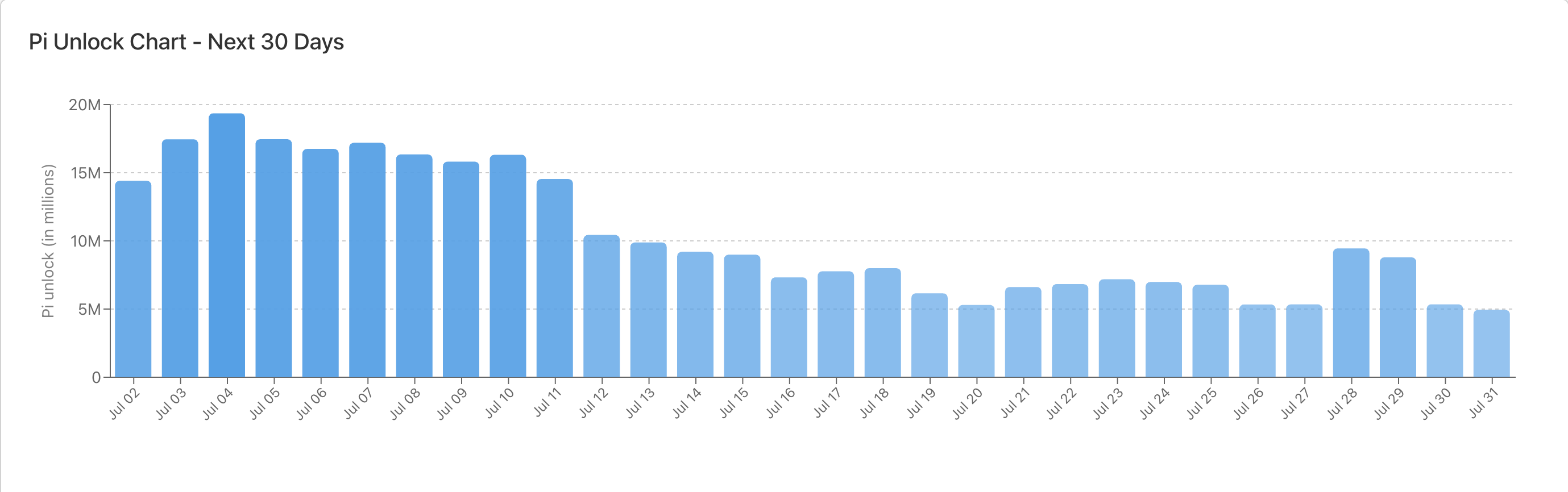 Videre står PI overfor en betydelig token unlock hendelse i den kommende måneden. Data fra PiScan viser at 312,29 millioner PI tokens, verdsatt til $ 152 millioner til dagens priser, vil bli frigjort over de neste 30 dagene.