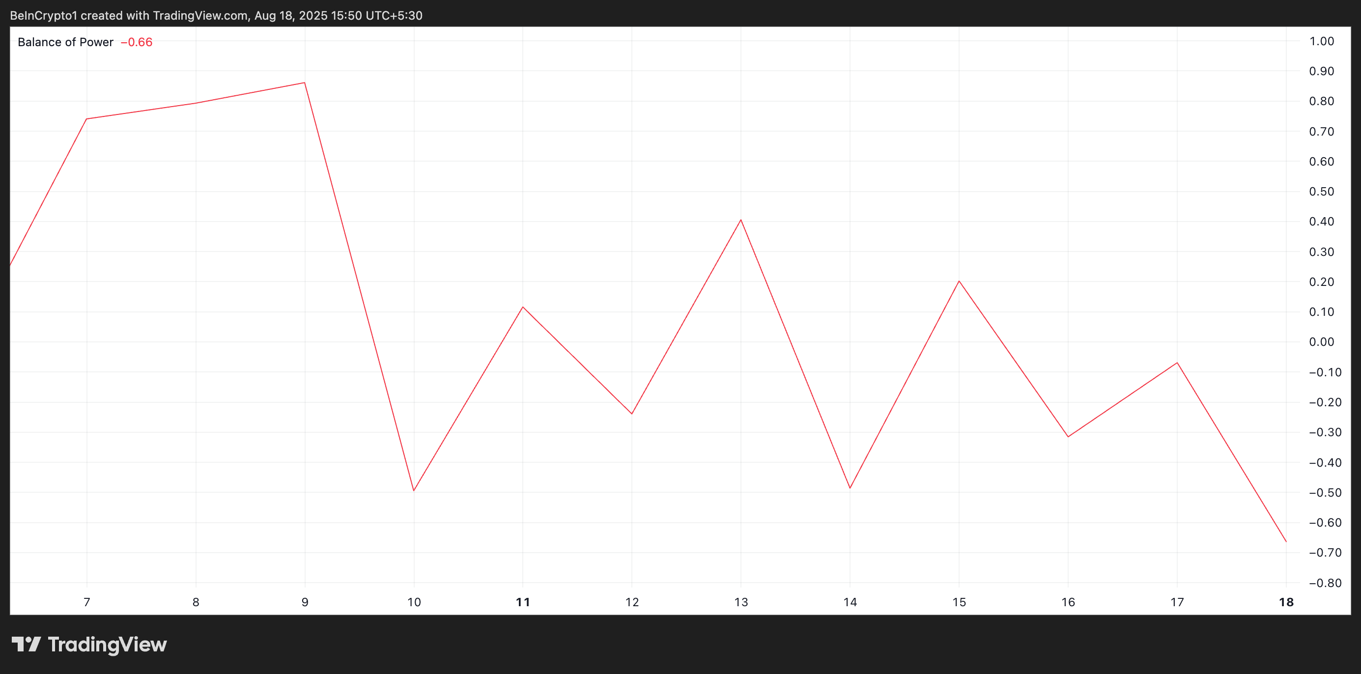 Videre støtter altcoinens negative Balance of Power (BoP) dette bearish synet. I skrivende stund er indikatoren på -0,66 og trender lavere, noe som fremhever den svekkede etterspørselen etter PI.