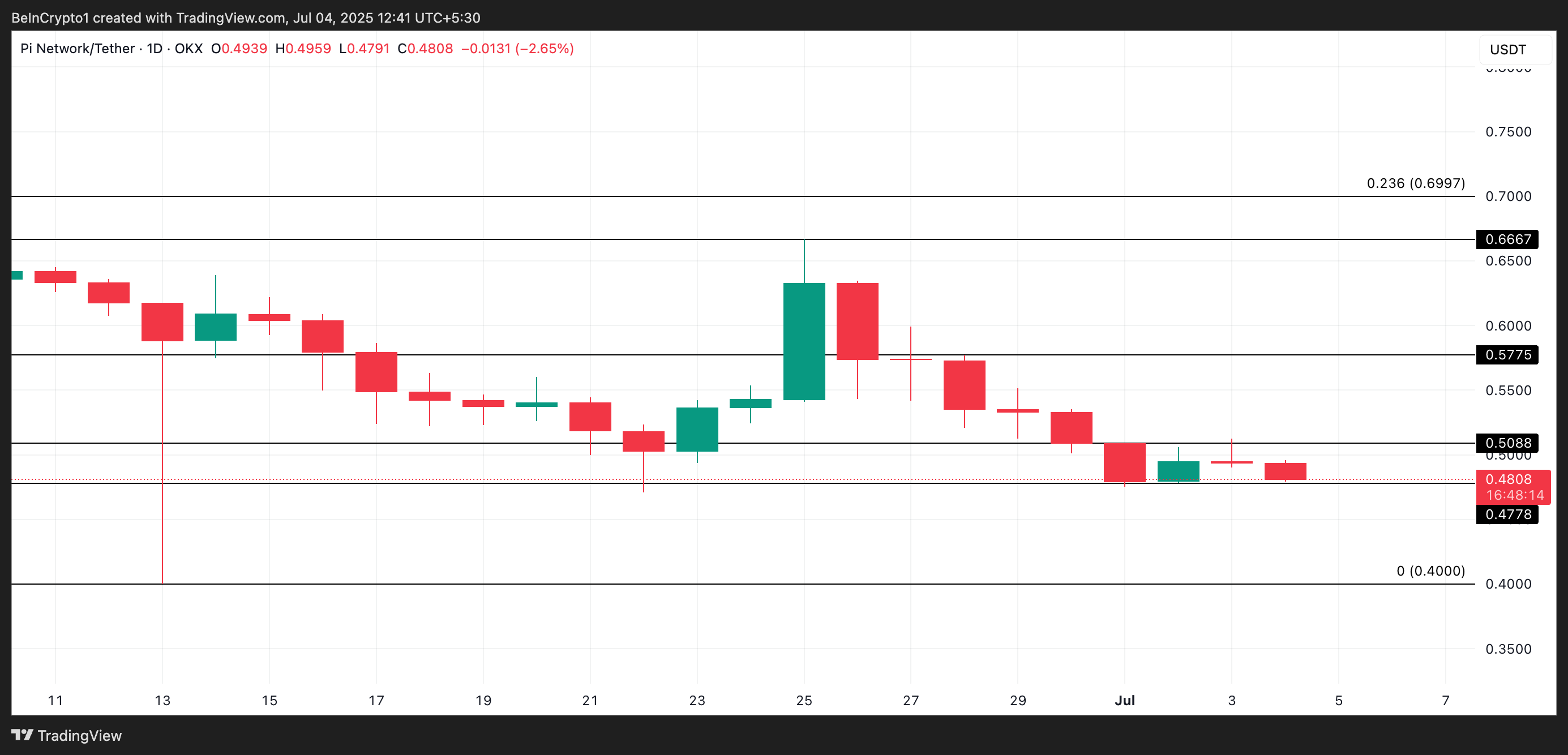 Perioder med lav volatilitet gir ofte vei for skarpe utbrudd eller sammenbrudd når momentumet vender tilbake. Hvis bearish sentiment gjenoppstår og $ 0,47 støttenivået svikter, kan PI falle til sitt laveste nivå noensinne på $ 0,40.