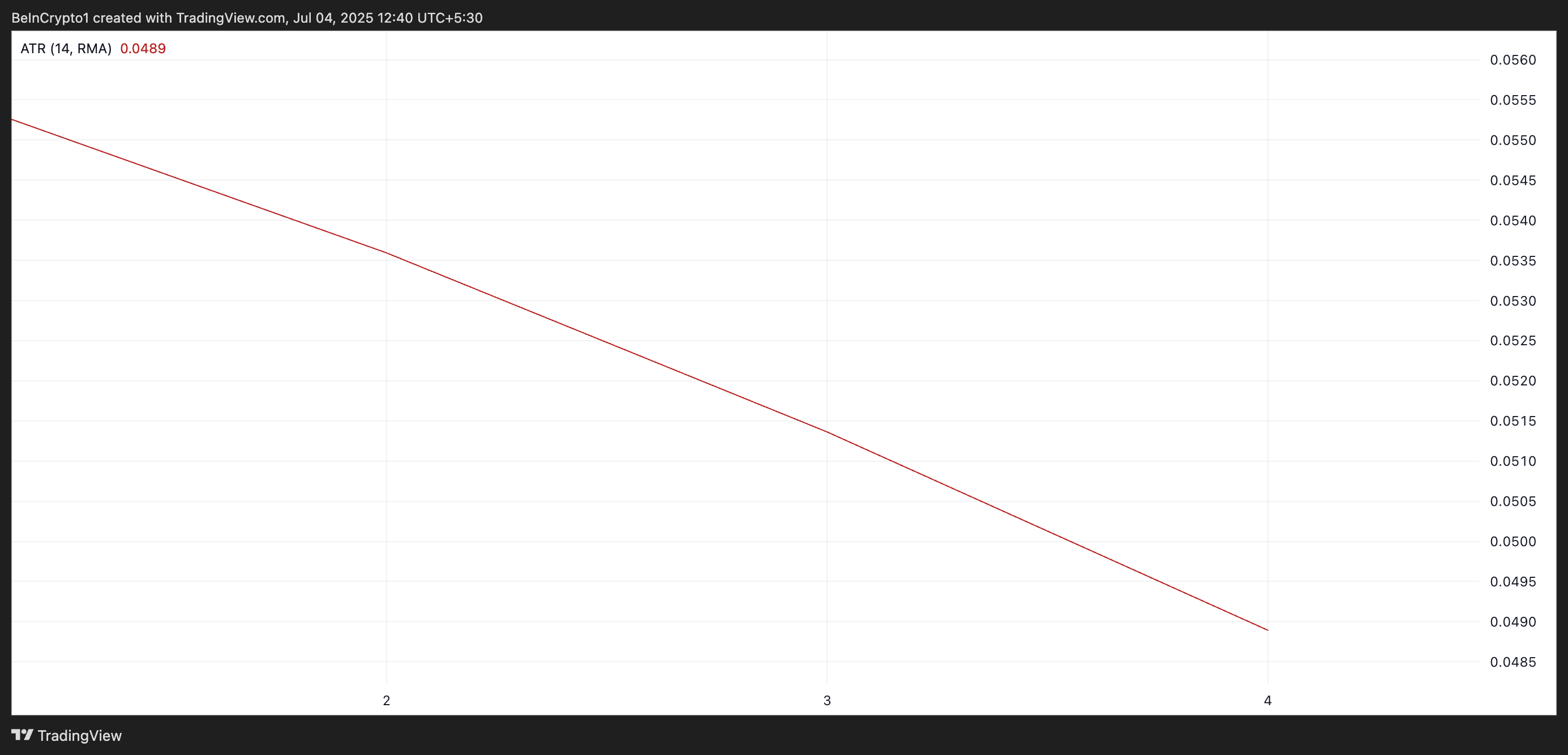 Videre bekrefter tokenets fallende Average True Range (ATR) den jevne nedgangen i markedsvolatilitet. På presstidspunktet var den på 0,048, og noterte en nedgang på 12 % siden tirsdag.