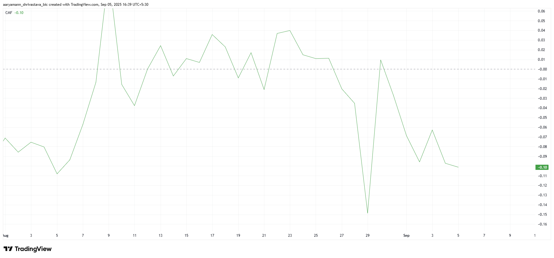 Til tross for optimismen presenterer makro momentumindikatorer et forsiktig bilde. Chaikin Money Flow (CMF) viser for øyeblikket svake innstrømninger, noe som fremhever mangelen på sterk investorstøtte. Denne divergensen antyder at selv om stemningen kan være i endring, forblir faktisk kapitalforpliktelse i Pi Coin begrenset.