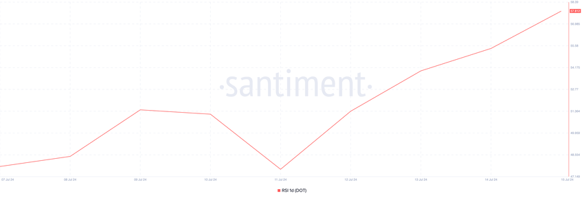 Videre er Polkadots relative styrkeindeks (RSI) på pressetidspunktet i en oppadgående trend på 57,81, noe som bekrefter økningen i kjøpepresset over salgsaktiviteten.