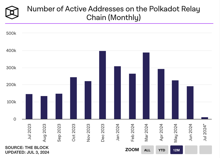 Polkadot opplevde en betydelig nedgang i nettverksaktiviteten på tvers av stafettkjeden og parakjedene i juni.