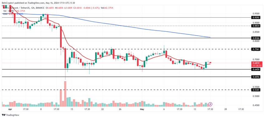 Dette prisnivået har fungert som grensen for MATICs oppgang i over en måned. Støtten på $ 0,64, sammen med denne motstanden, har dannet en konsolideringssone, og Polygon native token vil sannsynligvis forbli innenfor denne sonen.