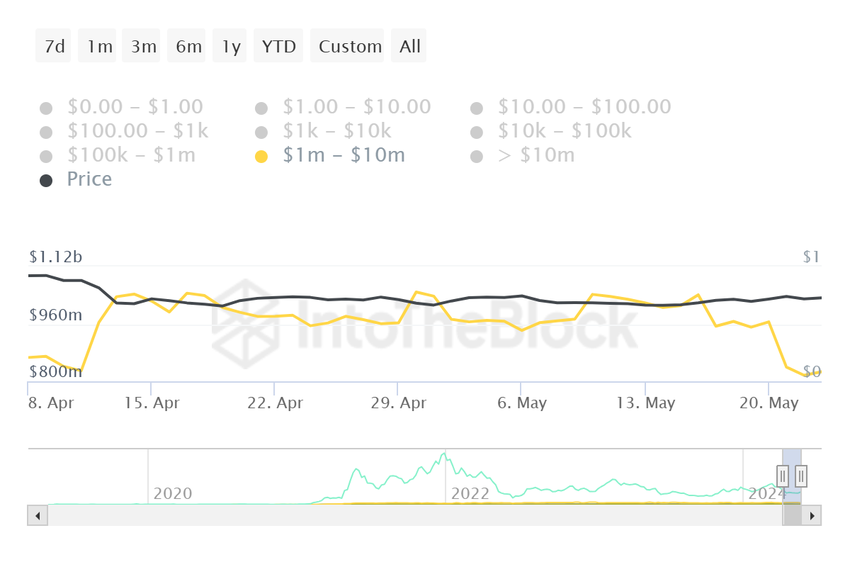 På den annen side viser hvaladressene pessimisme. Åpenbart ønsker hvalene å kompensere for tapene sine ved å selge. Bare i løpet av den siste uken har adressene som har MATIC til en verdi av mellom 1 og 10 millioner dollar, solgt MATIC til en verdi av 214 millioner dollar.