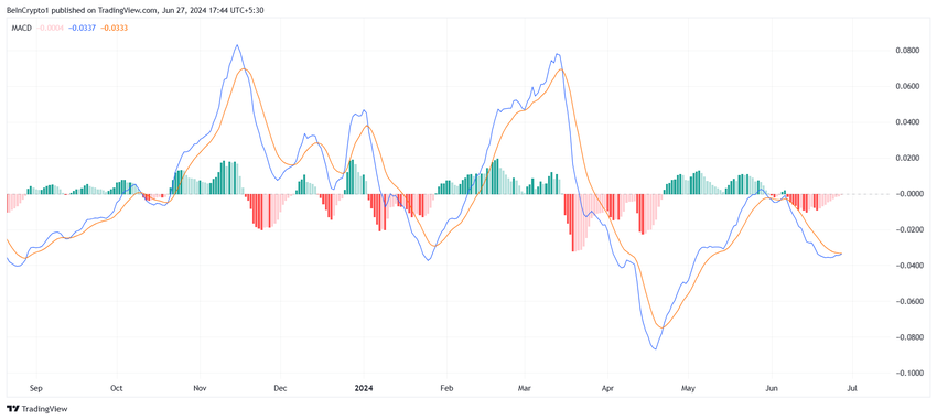 MATIC-prisen kan dra nytte av de positive signalene som er synlige på nettverket, for eksempel MACD-indikatoren (Moving Average Convergence Divergens), som signaliserer at MATIC er på randen av en bullish crossover.
