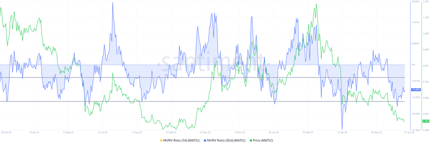 For tiden står Polygons 30-dagers MVRV på -10%, noe som indikerer tap, noe som kan føre til kjøpepress. Historisk sett signaliserer MATIC MVRV mellom -5% og -15% vanligvis starten på utvinningsrally, og markerer en mulighetssone for akkumulering.