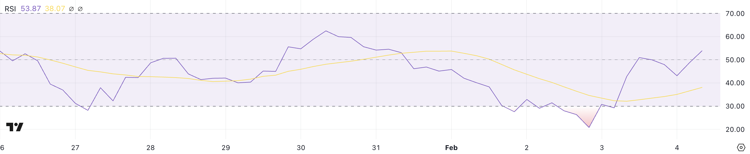 Raydiums RSI er for øyeblikket på 53,87, og har steget kraftig fra 20,8 for bare to dager siden. Relative Strength Index (RSI) måler momentum ved å spore nylige prisbevegelser, med verdier under 30 som indikerer oversolgte forhold og over 70 som signaliserer overkjøpte nivåer.