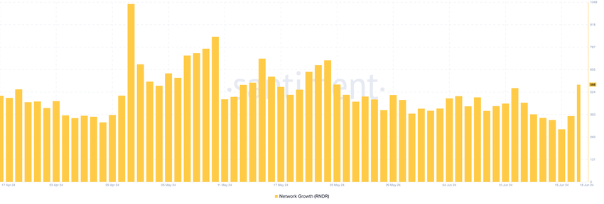 I følge kjededata fra Santiment nådde aktive adresser på Render-nettverket et rekordhøyt nivå 17. Aktive adresser måler det estimerte antallet brukere som deltar direkte i transaksjoner på en blokkjede.