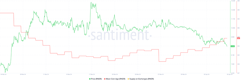 I løpet av den siste uken har Mean Coin Age (MCA) for Render, som måler den gjennomsnittlige varigheten som mynter holdes eller forblir ubrukte, steget betydelig.