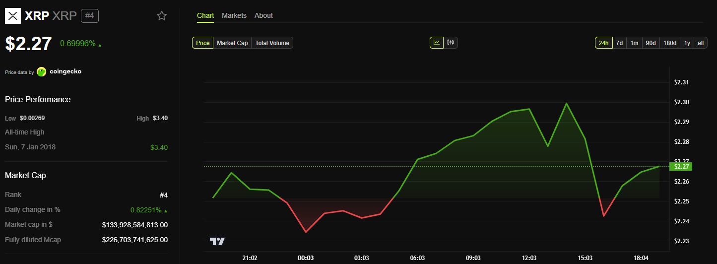 XRP kurs steg bare med omtrent 3 % etter nyheten. Denne beskjedne økningen reflekterer realiteten at banklisensen, hvis den blir innvilget, ikke direkte forbedrer XRP sin nytteverdi eller juridiske status—i hvert fall ikke ennå.