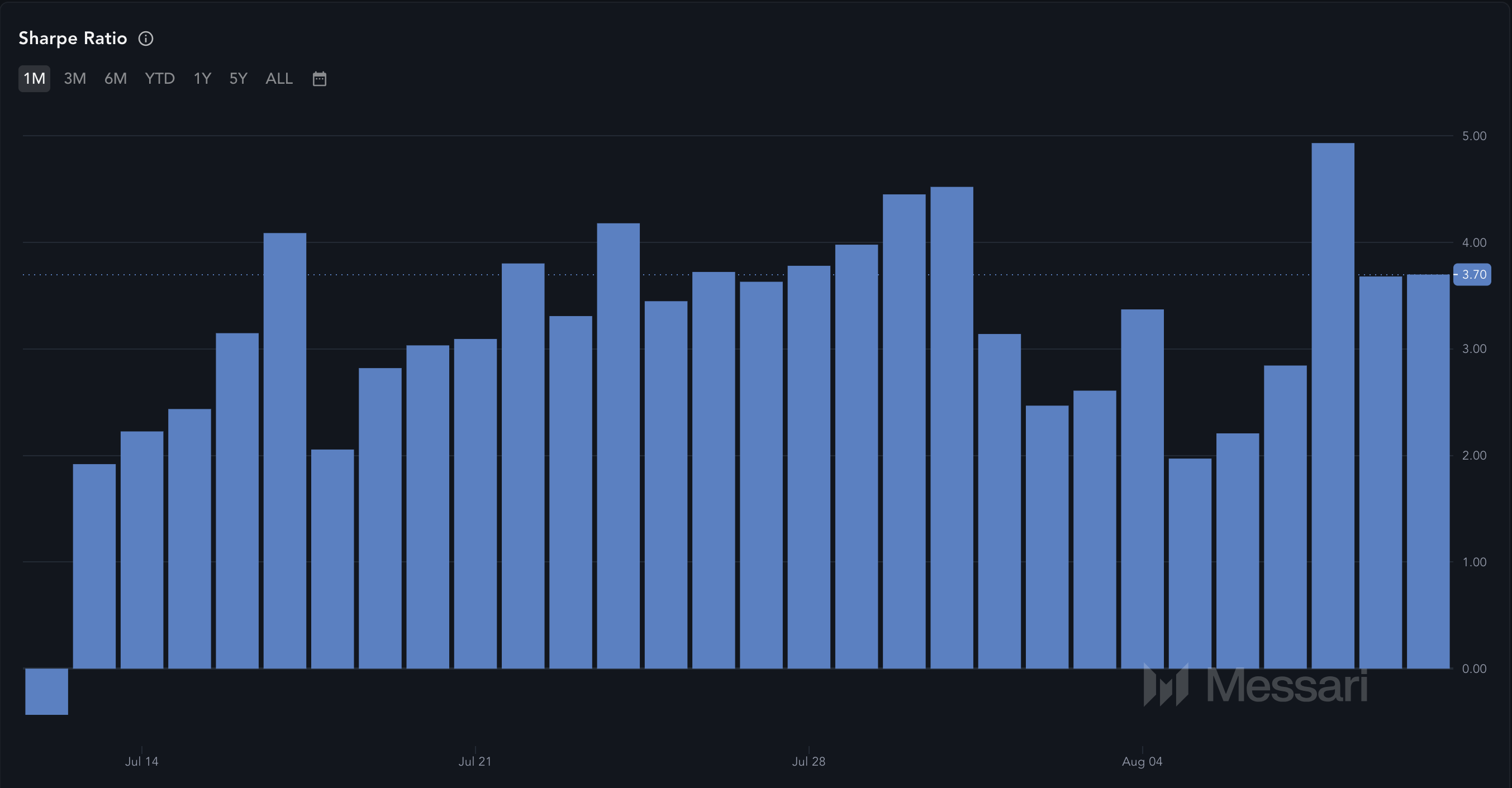 Imidlertid antyder en negativ ratio at kryptoen i spørsmålet er fri for avkastning eller kan medføre tap. Ifølge Messari er XRP sin Sharpe-ratio 3,70.