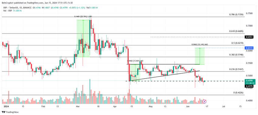 På den annen side, hvis støtten på $0,47 går tapt, er det også mulig å trekke til $0,42. Dette ville plassere XRP-prisen på et årlig lavt nivå og ugyldiggjøre den bullish tesen fullstendig.