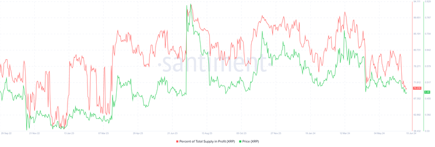 Vanligvis bekreftes en markedstopp når en eiendels totale fortjenesteforsyning krysser 95%-merket. Imidlertid er det totale overskuddstilbudet til XRP 70%, langt fra å merke seg en ulempe.