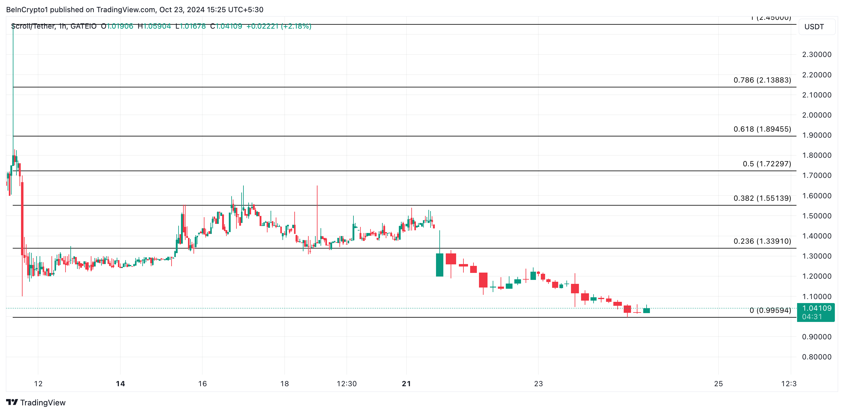 For øyeblikket handles SCR til $ 1,04, og har sett en nedgang på 19 % de siste 24 timene. Ettersom den bearish stemningen fortsetter å vokse, kan tokenens pris møte ytterligere tap. Her er hvorfor.