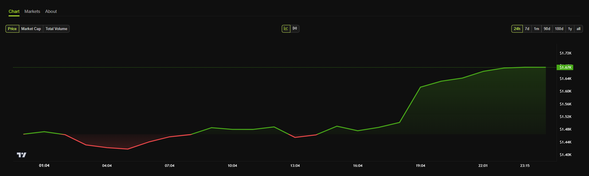 Prisen på Ethereum beveget seg knapt etter denne kunngjøringen. Kunngjøringen ble i stor grad overskygget av Trumps tollpause, som forårsaket gevinster på over 14 %.